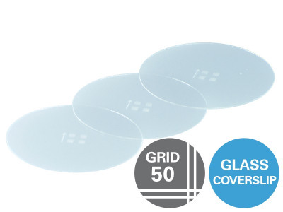 Gridded Glass Coverslips Grid-50: Ø 28 mm, #1.5H (170 µm +/- 5 µm) D 263 M Schott glass, grid repeat distance 50 μm, unsterile |